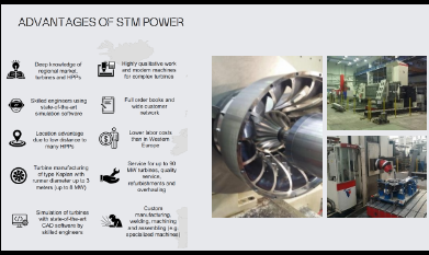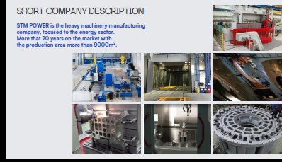 Kaplan, Francis Turbine Factory, Valves, Hydraulic Installations, Repair and Maintenance of Hydroelectric Power Plants. Also assembly and disassembly of Thermal Power Plants (Wind and Photovoltaic Power Plants) Inspections and Technical Tests, incorporated in the Slovak Republic, with registered office at Lieskovec 598/75, 018 41 Dubnica nad Vahon, registered in the Mercantile Registry of the Trencin District Court, with number 36 321 982. STM POWER has a well-equipped factory in Dubnica nad Vahom, with excellent production capacity.
